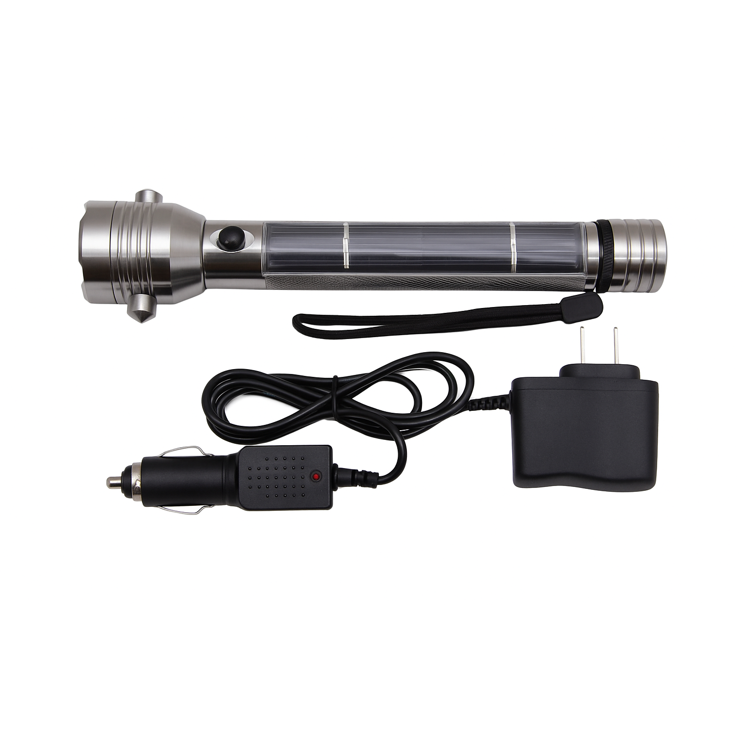 Tato svítilna je navržena pro náročné podmínky. Vhodná do auta, kempu i jako součást výbavy pro případ výpadku proudu. Součástí konstrukce je bezpečnostní kladívko pro rozbití skla v nouzi, solární panel, kompas a možnost dobíjení ze sítě či autozásuvky pomocí přiloženého kabelu.